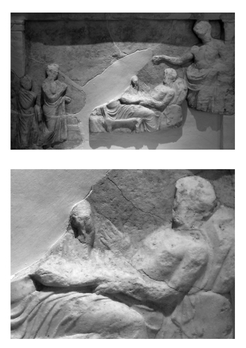 A partir du troisième article, des extraits tirés d'Aristophane et de Pausanias, et des illustrations(disponibles en téléchargement ci-dessous), les élèves pourront retracer le parcours et le cheminement des malades, à savoir la purification, le sacrifice et l'incubation.